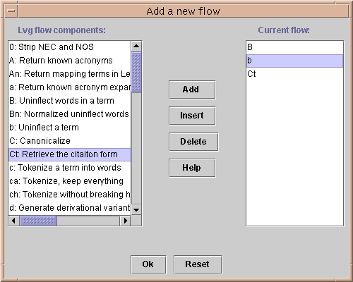 As shown above, this dialog contains a list to display the current flow(s) and six control buttons: