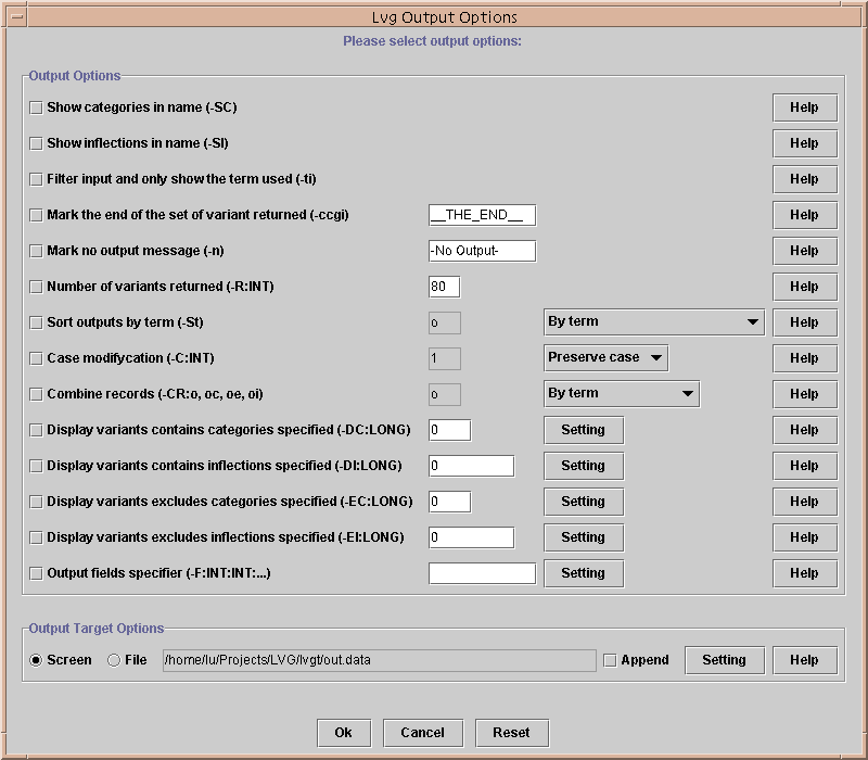 An output option dialog (as shown below) is shown up for users to setup output filter options after the options button is pressed.